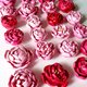 套由瓷花制成的墙壁装饰。 牡丹花。 每朵花都是手工雕刻的。 套装中有 24 朵不同大小和形状的花朵。 最大花朵尺寸:6 英寸。 花瓣表面有纹理,纹理美丽。 瓷器不施釉,具有高贵的哑光质感。 瓷花是用丙烯酸绘制的。 这幅画的色调范围从粉红色到亮红色。 绘画的颜色可以单独选择。