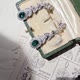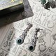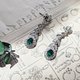 下方垂坠的仿祖母绿宝石周围镶嵌满细腻的莱茵石,是一款相当精致的作品。
