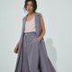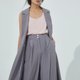 此颜色很适合穿搭时配亮色浅色系商品,更可以衬出灰色亮眼的部分,裤管的落地感让腿型更修长,外褶的部分非常可爱,增加活泼俏皮感