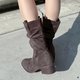 鞋面采用质感绒布,鞋筒设计V型开口,低调呈现西部风格的自由与率性。 鞋跟高度:约4.7cm 鞋面:超纤+绒布 鞋垫:增高鞋垫 鞋底:防滑橡胶底 此款版型:正常 【现货24H内出货+预购7-21天不含假日】