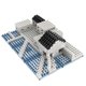 美术馆运用了当地民居常见的仓库造型”石藏"(比较有钱的建造”石藏”,没钱的是”土藏”)来做为建筑的本体,以水影来柔化石造的房子。建筑六幢石屋建材中的“迎宾大厅”、“石仓展示室”、“茶室”等的三幢,即是大正时代和昭和初期,采芦野石而建。顾名思义,即那须地方的芦野一带所产的安山岩。其具耐水耐火耐久、易加工、易接着等特性,而被人开采来建造石屋、石仓库。然而,烧芦野石当建材,还是当地石艺头一遭。馆中井然有序的石砌与水池,在不同的角度看来,散发出不同的美感,时而一片绽蓝的水庭映石仓库,时而一片线条独特的石组积墙,精明抢眼。