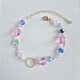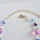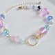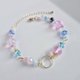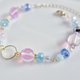 这款时尚手链,以圆形金属圈搭配上可爱的粉色月光石(Luna Flash),以及浅蓝色极光、海洋蓝、阿拉巴斯特浅蓝、阿拉巴斯特粉色极光等色的捷克珠与玻璃珠,并以金色五金配件点缀。