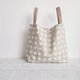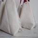 - 展开像是背心,提起来会变成自然可爱的三角包。