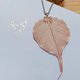 /材质介绍/ 真叶镀金/玫瑰金、不锈钢链 /尺寸规格/ 真叶:无固定尺寸形状、链条长约39.3cm(平放),穿戴位置大约胸下 *注意:叶子为易碎品,请小心摆放
