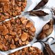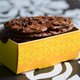严选顶级甜点师父使用的法国CACAOBARRY 调温70%黑巧克力,加入法国President发酵奶油、顶级加州杏仁片、糖、蛋清、可可粉、以及小量面粉,最后再将烘烤过的可可豆敲碎洒在表面。混合香纯浓郁以及清新的可可果香,层次丰富。