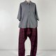 这款裆裤由䌷绸制成。 松紧带裤头可向侧面拉伸超过50厘米, 因此臀围约100厘米左右皆可穿着。 附有口袋。 ■适合季节 所有季节 ■材质 䌷绸 (丝绸) ■尺寸 腰围:FREE (可自行调整) 臀围:适合约100厘米左右 总长:99厘米 裤裆:53厘米 裤脚宽:24厘米 (松紧带) ■口袋 侧边有拼接口袋。 ■关于材质标示■ 本作品大部分由二手和服布料制作而成。因此,常有无法确知确切材质的情况,作品说明中的材质标示可能为推测。