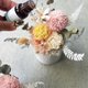 产品说明:索拉玫瑰、索拉乒乓菊、绣球、尤加利、羊齿草等花材。