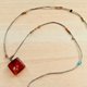 四条苎麻棉绳以四股结的方式编成项链当画布,然后彩上老琉璃珠与铜珠,画上彩色羊毛线与苎麻绵绳,每条项链都有些许不同喔!