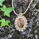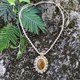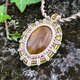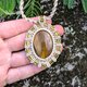 这款吊坠采用流苏艺术制成,配有可爱的大虎眼石。石以坚固的米色线条手工包裹,并饰有玻璃珠装饰。这是一个独特的设计,所以这款吊坠是独一无二的。