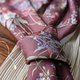 选用斜纹织纹印制出来后丝巾整体带有雾面感,银灰、浅粉与枣红的调和,是绘者自己也蛮喜欢的一件。