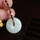 精美手机挂 天然和田玉平安扣,羊脂白玉,脂份细腻,颜色白润,搭配精美手工绳,古法工艺配饰,尺寸约17×7.4mm