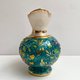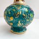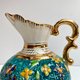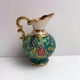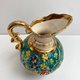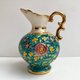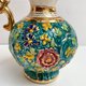 华丽的彩陶水壶花瓶,带有美丽的绿松石背景,饰有明亮的凸起珐琅和 24K 金的彩色花朵图案。