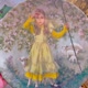 瓷盘上的小女孩穿着鲜亮的黄色裙装,手持牧羊杖,眼神流露出寻觅与童真的神情,身旁的小羊群更增添了一份纯真童趣。