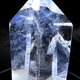 蓝针水晶是一种异像水晶,外表清透美丽的蓝针水晶,仔细会看到像是一根根的白色羽毛飘过,蓝针水晶利用了它与蓝碧玺相互结合而成的特性,产生了一股显性的水晶编织网,蓝针水晶赋予很唯美浪漫的名字称为天使的羽毛。一般隐性的蓝针水晶经常被误认为是普通的白水晶,必须透过灯光照射才能显现出蓝针水晶的羽毛效果,事实上蓝针水晶的能量比一般的白水晶要强,亦比一般的白水晶要稀有得多。可以缓和治疗喉咙痛,慢性呼吸性疾病,安抚情绪,消除和放松紧张心情,增加创意,加强表达,以及增加说服力等等。