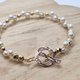 淡水珍珠铜丝线手链,搭配14kOT扣手链,此设计适用14围,OT扣需要合手围配戴