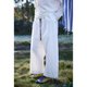松紧腰内抽绳,腰头同样用了一块波点布料做呼应,白色里面也有一些俏皮的处理。两侧有斜插袋,翻过看身后,有圆圆的贴袋,也有时代元素具象化的处理。腰下是裤管的量,量很好,克制与放开的比例处理的好,她的形态与长度,有松弛的状态,而这种状态又带着另一种稳妥在内,让一条白裤子也有中性安静的线条。
