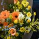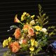 花材:勿忘我、蝴蝶陆莲、羽毛太阳、海芋、桔梗、玛格丽特、黄蓟花、串钱柳