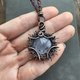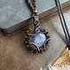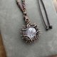 使用天然石,配以纯铜线,以绕线方式手作而成,然后再加上复古做旧效果,再抛光处理令花纹更具深度和对比。