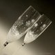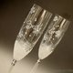 一组两入的手绘浪漫冬日婚礼香槟杯。银色雪花、银色光泽、珍珠效果、雪景效果。点缀施华洛世奇水晶。
