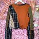 OTT独一无二•Unique日系橙绿色立体刺绣蕾丝格仔手勾上衣