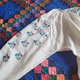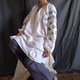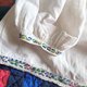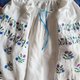 这件约战后1940至1960年代 Poltava中部地区的传统连身衣,以轻薄舒适的亚麻布料全手工缝制,小巧可爱、极细密的花朵布满袖子是以单股绣线 (也就是一根细线) 缝制的,可见其耗时之处