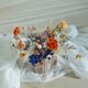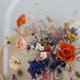 永生玫瑰、罂粟花、小雏菊、大丽菊、法国白梅、胡椒果…等 15 种以上花材搭配设计。