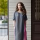 ★ Linen Silver Gray with Gradation Berry Berry Side Tuck Dress