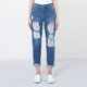 - 深蓝色大面积手工割破男友裤 #100%棉 #男友裤 #手工割破