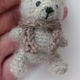 这只滑稽可爱的泰迪熊由蓬松的毛线手工编织而成。 该 它填充了低过敏性材料,对儿童安全无害。 玩具高 5 厘米。 泰迪熊可以坐着,也可以站着,并配有支架。 礼盒包装
