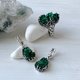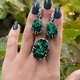 树枝银饰套装配绿色孔雀石 原石绿色宝石首饰