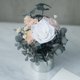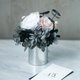 以烟熏色的渐层色系为创作主题,选用日本大地农场有机食用标准之永生玫瑰与永生绣球花进行创作,搭配欧洲进口干燥花叶材。让花与祝福延续长长久久。尺寸精巧的小桌花,可放在办公桌与咖啡桌边桌。是一款尺寸非常实用的花礼。