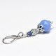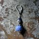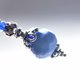 这是一款将多面体俄罗斯蓝宝石、莲华银饰与蓝色珠饰串连而成的单耳耳环。