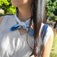 脖颈间绑上一抹蓝俏皮趣味,就算只穿简单的素白T映着都好看