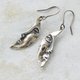 Crescent moon profile earrings made with traditional metal engraving techniques by hammering 925 Silver plate to create unevenness.