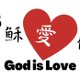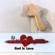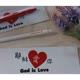 红色原子笔 , 上面写 : God is Love + ❤️图案 (上帝是爱)