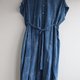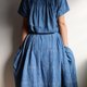 它看起来像典型的前面有纽带的连身裙,肩膀上使用了褶皱,即使布料很多,也显得很干净。