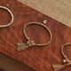 以手工黄铜彩金属线穿上,配合作品的设计。
