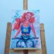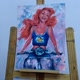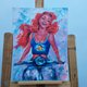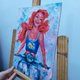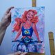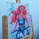 原创油画。这幅画以现代风格描绘了小美人鱼爱丽儿。该画的尺寸为30x22.5厘米。用油彩在纸板上作画。