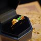 •要凑齐7颗不同色、同尺寸的蛋面真的很不容易,耗时慢慢挑、耗工镶嵌