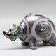 瓦列里·基里洛夫陶瓷雕塑,造型为犀牛,由黏土制成,部分施以釉彩,以摄氏 1040 度高温烧制而成。 手工制作与手工上色。 尺寸:高 8 厘米, 长 14 厘米, 宽 6.5 厘米。
