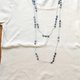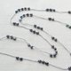 シルバーのラメ糸でネイビーブルーの淡水パールを編み込みました。