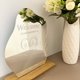 商品特色:白色纯线条似颜绘、婚礼日期、迎宾词转印贴在镜面压克力上