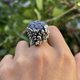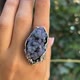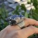 大宽银戒指 镶圆形紫色玉髓 颗粒纹理 手工艺术设计。