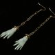 1. 黄铜:黄铜为铜与其他金属的合金,成色金黄,质地坚硬耐用,不易损坏。会因为接触汗水、油脂、化学品(如香水、化妆品、酒精)等物而氧化变黑。建议配戴完擦拭干净再行收纳。若黄铜部位变黑,可使用饰品清洁专用的拭银布擦拭,即可轻松恢复光亮。