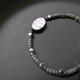 珠光黑碟贝搭配纯银珠、浅灰色米珠和炭灰蜡绳,让黑碟贝美丽的光泽在低彩度中流转。