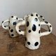 - 质感小巧的花瓶,适合摆放鲜花,外层为半雾面的奶油白涂料,并饰有黑色圆点彩绘。