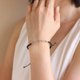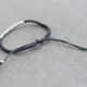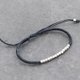这是用黑色棉线编织的可调节手镯与立方体银珠编织在一起。关闭使用滑结