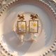 耳环底部垂坠一颗渐变色金箔珠,随着摆动映出柔金光泽,为整体增添细致浪漫的质感。上方蝴蝶结耳针让耳环多了一分可爱与典雅,使整体兼具文青、甜美与复古气息。