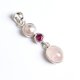 今回ふわっと優しいピンク色のローズクォーツに鮮やかなピンク色のルビーと肌馴染みのよいほんのりピンクのパールを合わせてみました。