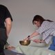 学会如何在自我疗愈时,以坐姿、正面稳定地为他人敲钵,为双方创造一个声音疗愈空间。